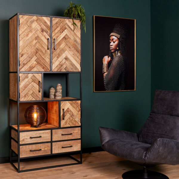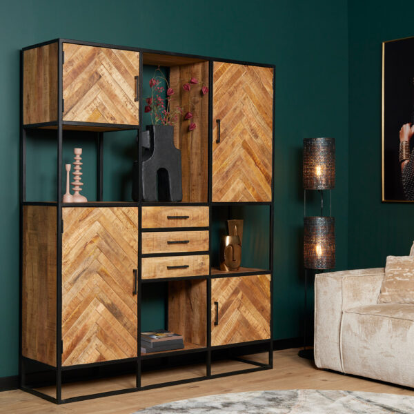 Fächerschrank Denver | Mangoholz und Stahl | 90 cm